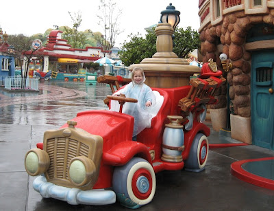we walked over to Downtown Disney (located between Disneyland and California Adventure- no admission fee... just lots of shopping and such) to have some dinner and take a look around. It was raining and I wore very slippery flip-flops.